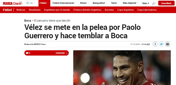 Según reportó Marca, Vélez se habría lanzado de lleno al mercado de pases en busca de frustrar el arribo de Guerrero al Xeneize y gestar así una contratación de lujo para reforzar el primer equipo.