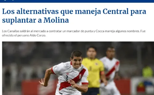 “Las alternativas que maneja Central para suplantar a Molina”, se llama la nota en que mencionan al lateral derecho. “Fue ofrecido el peruanoAldo Corzo, integrante del seleccionado incaico y de buen presente en Universitario de Perú. El lateral de 30 años tiene una cláusula en el contrato que sostiene con los Cremas respecto a una propuesta que pueda llegar del exterior”, escriben los argentinos.
