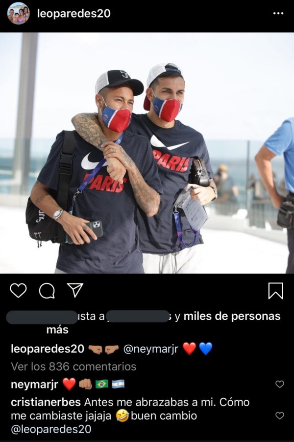 Una de las últimas fotos que subió fue abrazando conNeymaren la previa de la semifinal contra RB Leipzig.