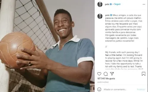 Además, en pasados días también se le vio actio a ‘O Rei’, en sus cuentas de redes sociales, ya que le envió un mensaje a su amigo y cantante Roberto Carlos, quien perdió un hijo debido a un cáncer: “estoy recuperándome bien, pero hoy quiero mandar todo mi cariño, amor y oraciones a mi gran amigo Roberto Carlos. Deseo que Dios conforte su corazón”.