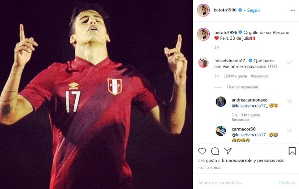 Así, el lateral troleó a Betoto después de su publicación. Al de Alianza no le quedó otra que poner: “Hermanito prestame tu numerito”.
