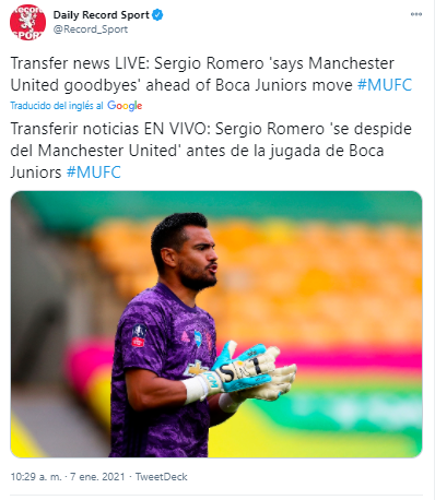 El portal Daily Record Sport, recolectando también información de otros sitios web deportivos de Inglaterra, aseguró este jueves que “el arquero Sergio Romero está listo para salir del Old Trafford y llegar a Boca Juniors”.