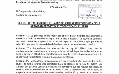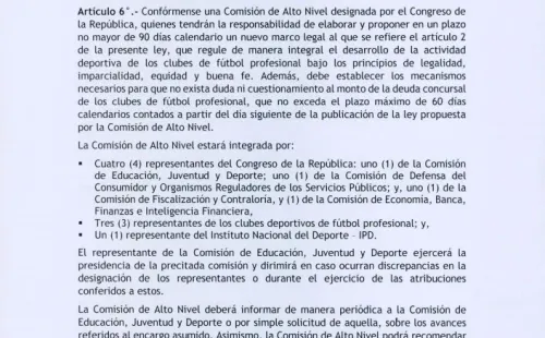 Marco Cabrera de Líbero lo compartió y escribió lo siguiente: “Esto dice el Proyecto de Ley 6863 sobre los clubes que están en procesos concursales, entre ellos Universitario. Se interpreta que podría salir Gremco de la administración y regresaría SUNAT al mando”.