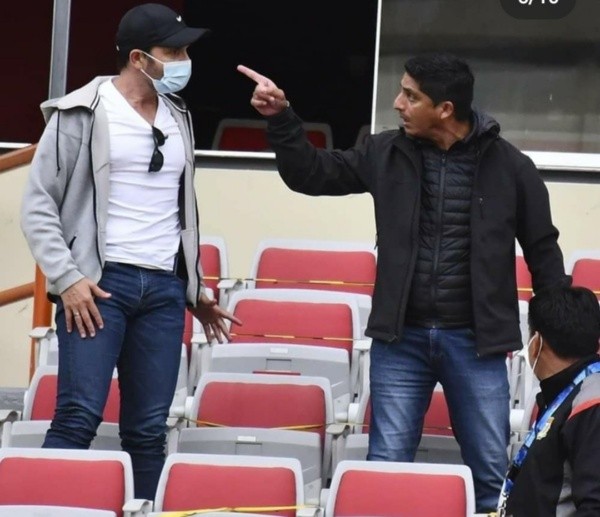 El exfutbolista sale señalando al dirigente y con la vena del cuello hinchada. La rabia, la impotencia, es evidente. El director deportivo solo lo mira.