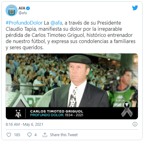 Hace algunos días, integrantes de su familia desmentían su fallecimiento pero aseguraban que su estado de salud estaba complicado. Con una notable trayectoria como jugador y una inolvidable vida como director técnico, Griguol dejó este mundo con incontables historias y anécdotas dentro del fútbol argentino, que ahora está de luto. ¡Hasta siempre, Timo!