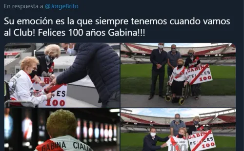 La hincha fanática del equipo actualmente conducido por Marcelo Gallardo cumplió nada más ni nada menos que 100 años de edad y pudo festejar su siglo conociendo el mismísimo Estadio Monumental de River. Sí, mejor tarde que nunca. Por ende, se vivieron momentos de muchísima emoción en el escenario donde, este domingo, el Millonario jugará contra Colón de Santa Fe.