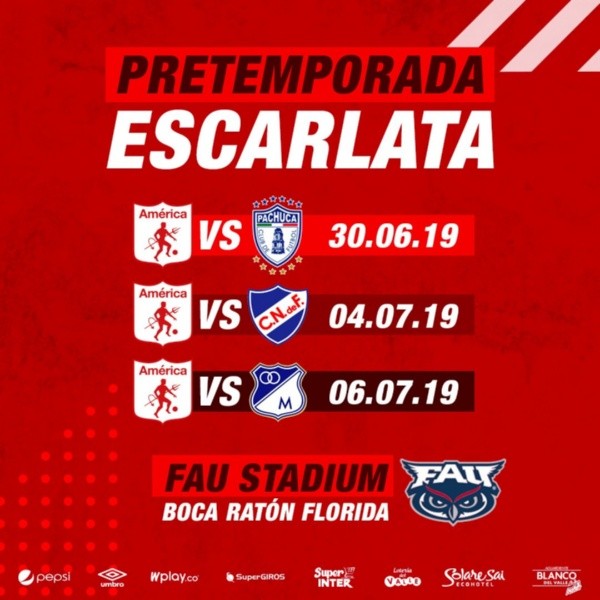 Tanto este encuentro como los próximos ante Nacional de Uruguay y Millonarios, se llevarán a cabo en el Fau Stadium, en Boca Raton, Florida.