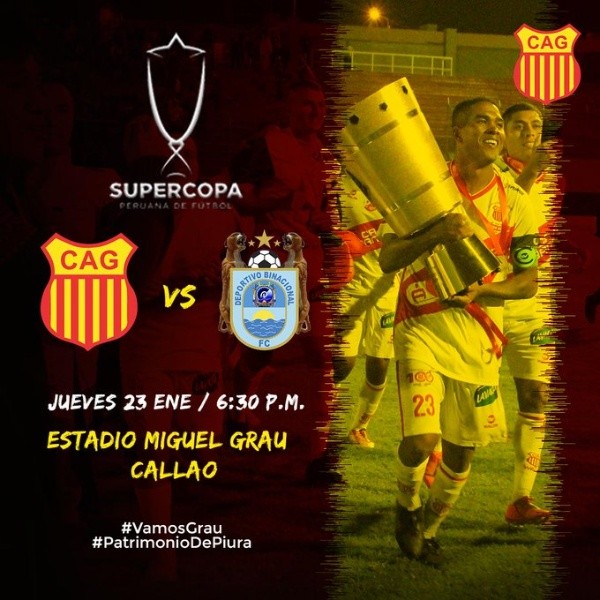 El partido de Binacional vs. Atlético Grau por la Supercopa Peruana será este jueves 23 de enero en elEstadio Miguel Grau,Callao.