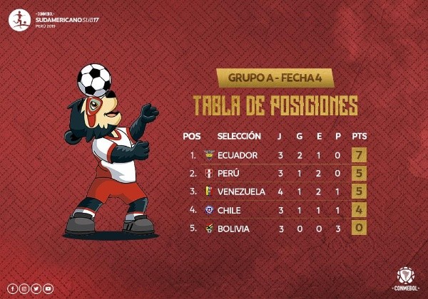 Bolivia se ubica en el fondo del Grupo A sin puntos luego de 3 derrotas. Con estas estadísticas, el equipo de Sixto Vizueteya no tiene posibilidades de acceder a la siguiente ronda.
