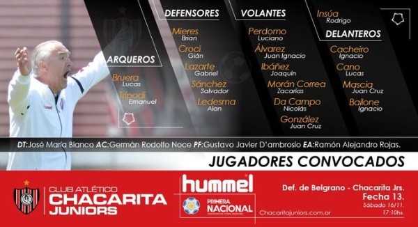 Defensores de Belgrano y Chacarita serán rivales este sábado en un duelo correspondiente a la fecha 13 de la Primera Nacional.