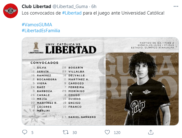 Libertad, entre tanto, no ha tenido resultados regulares durante las últimas semanas y llega a esta cita tras haber caído por 2 a 1 ante el conjunto de 12 de Octubre en encuentro correspondiente a la Liga de Paraguay.