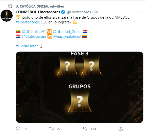 Los de casa alcanzaron esta instancia del campeonato tras superar en la ronda anterior al conjunto de Liverpool de Uruguay. Universidad Católica reconoce la importancia de su rival y tratará de incomodarlo durante los primeros minutos del encuentro.