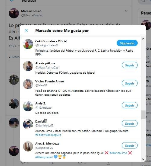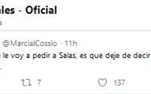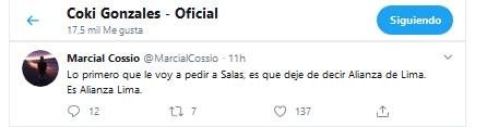 “Lo primero que le voy a pedir a Salas, es que deje de decir Alianza de Lima. Es Alianza Lima”, escribió Marcial Cossio, hincha con más de 1800 seguidores.