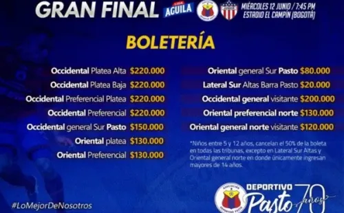 El objetivo del Deportivo Pasto es vender todo el remanente y copar El Campín, así la mayoría de fanáticos sean del Junior de Barranquilla.
