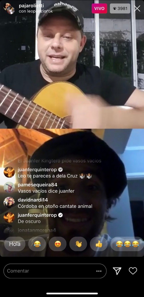 El jugador de River metió un vivo de Instagram al que se sumó el cantante, para divertir un poco a sus seguidores y regalarles algunas canciones.