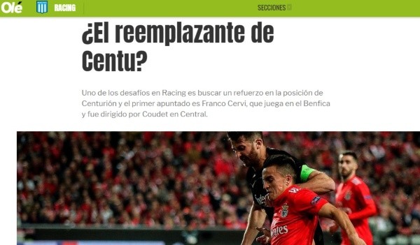 Obviamente, no se trata de algo sencillo: Cervi se encuentra defendiendo la camiseta del Benfica de Portugal y en muy buen nivel, por lo que incluso interesa en otros conjuntos del viejo continente.