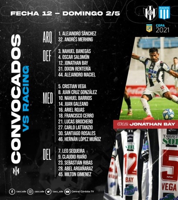Central Córdoba y Racing se enfrentarán el domingo2de mayo. El duelo entre ambas escuadras está pactado a las 18:40 horas (hora de Argentina) y tendrá lugar en el Estadio Único Madre de Ciudades.