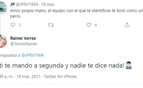 Entre todos los mensajes, algunos hinchas de Alianza Lima le respondieron a Rainer indicando que su salida de la U fue mala,y el exfutbolista también respondió a uno de ellos con el mensaje: “A ti te mandó a segunda”.
