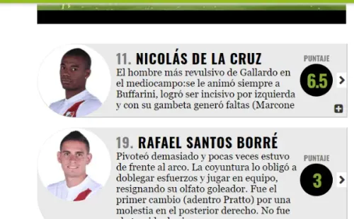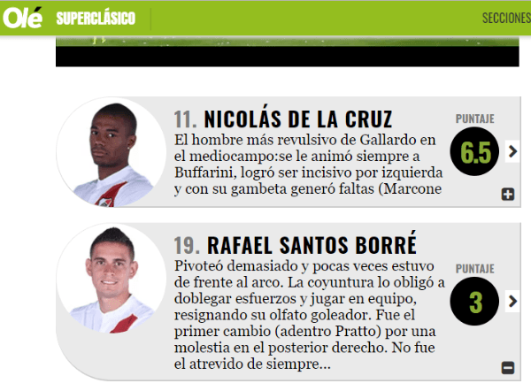 Al final, el diario Olé de Argentina le dio una calificación de 3 justificandolo con un “No fue el atrevido de siempre…”.