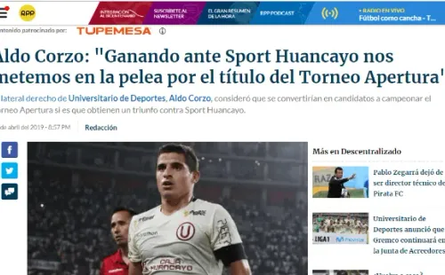 Aldo Corzo, capitán del equipo entregó sus apreciaciones a RPP sobre lo que se le viene al conjunto crema. “La idea es ganar todos nuestros partidos de locales. Si ganamos ante Sport Huancayo, nos metemos en la pelea por el título del Torneo Apertura. Nos ponemos a tresde Cristal y a seisde Binacional, y ellos juegan la siguiente fecha de visita. Nosotros queremos ganar el Apertura pero hay que ser conscientes que es un certamen largo“.