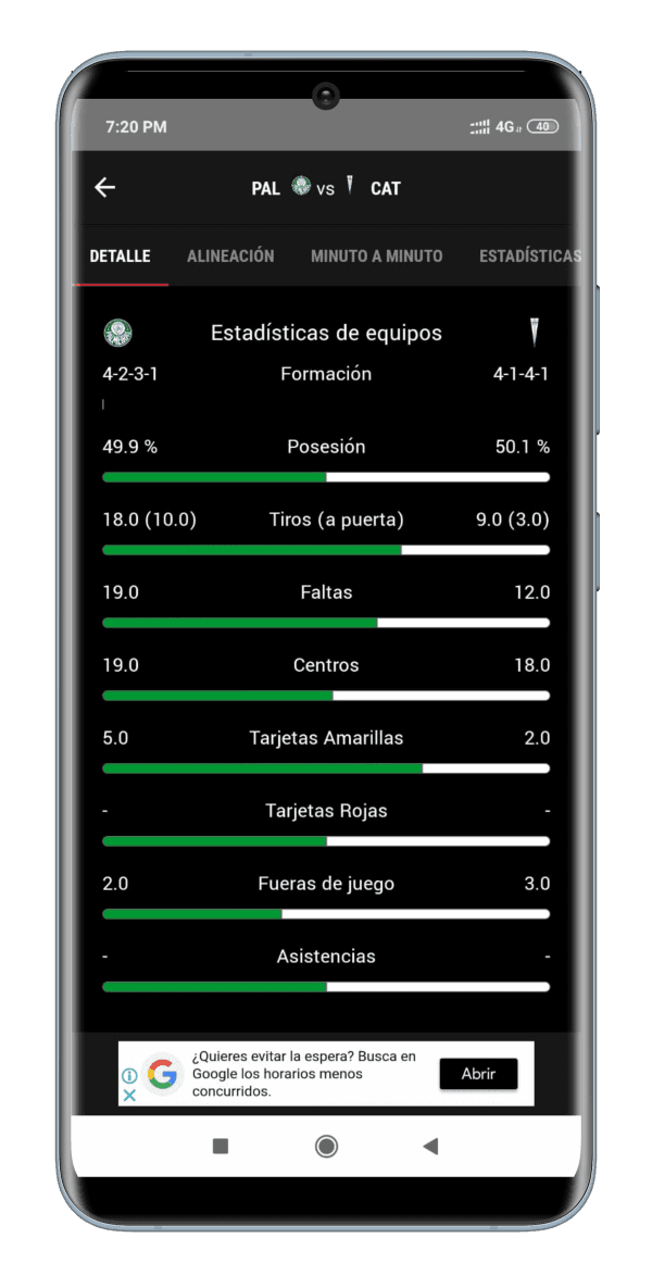 Para descargar la aplicación que entrega una completo listado deestadísticas de cada partido de tu equipoy además los resultados al instante de las ligas más importantes del mundo se puede ingresar a este link:Aplicación Bolavip