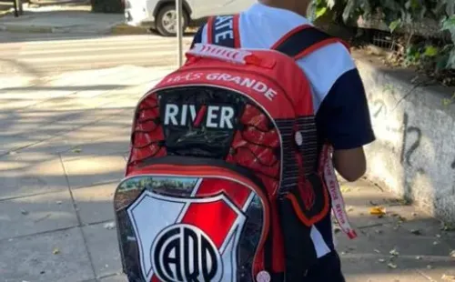 Pasa que mostró cómo fue la vuelta a clases del niño, usando una enorme mochila con el escudo y los colores de River.