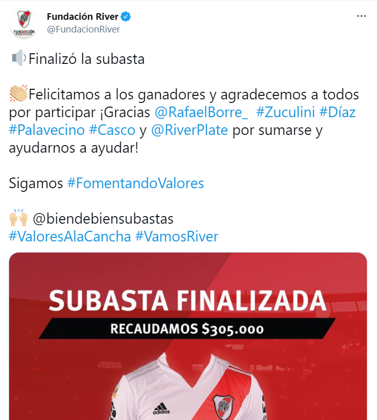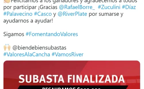 Un nuevo evento de la Fundación River que fue todo un éxito. La movida llevada adelante por el club de Núñez se trató de subastar varias camisetas del plantel profesional para así poder recaudar dinero que vaya directo a una escuelita en Santiago del Estero.