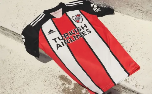 De la mano de adidas, River ha regresado a la famosa Tricolor, que combina mangas negras con dos franjas verticales blancas, rojas y negras. Todo con pantalón y medias negras.