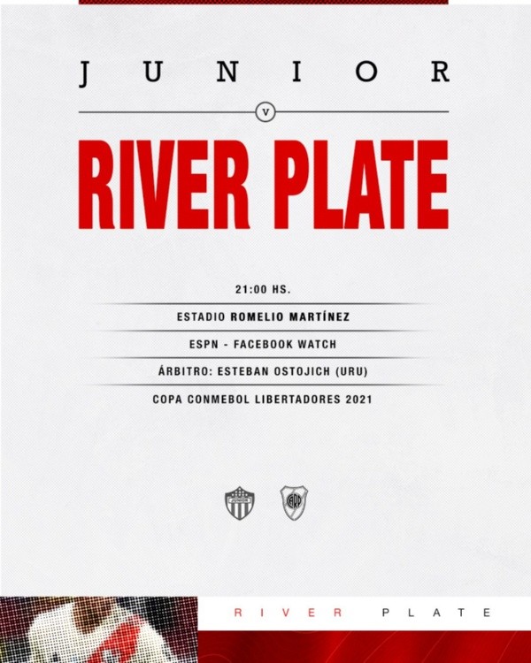 El duelo de Junior vs. River por el Grupo D deLibertadores se llevará a cabo HOY miércoles 12 de mayoen Estadio Romelio Martínez.