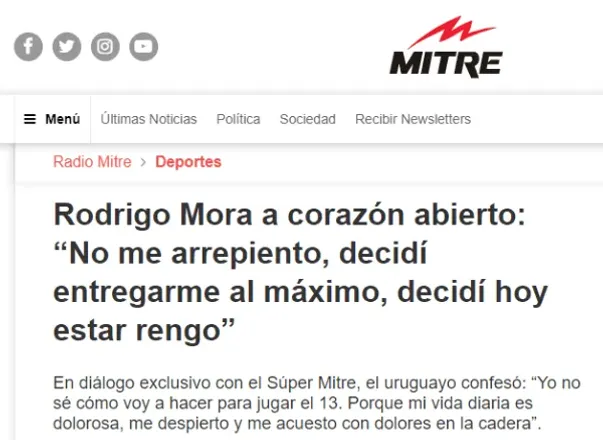 En diálogo con Radio Mitre, el uruguayo habló sobre su retiro y recordó: “Mientras pude di todo de mí.Realmente te soy súper sincero, yo no sé cómo voy a hacer para jugar el 13. Porque mi vida diaria es dolorosa, me despierto y me acuesto con dolores en la cadera”.