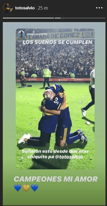 “Campeones mi amor”, compartió el propio jugador en su cuenta con un corazón de oro y otro azul.