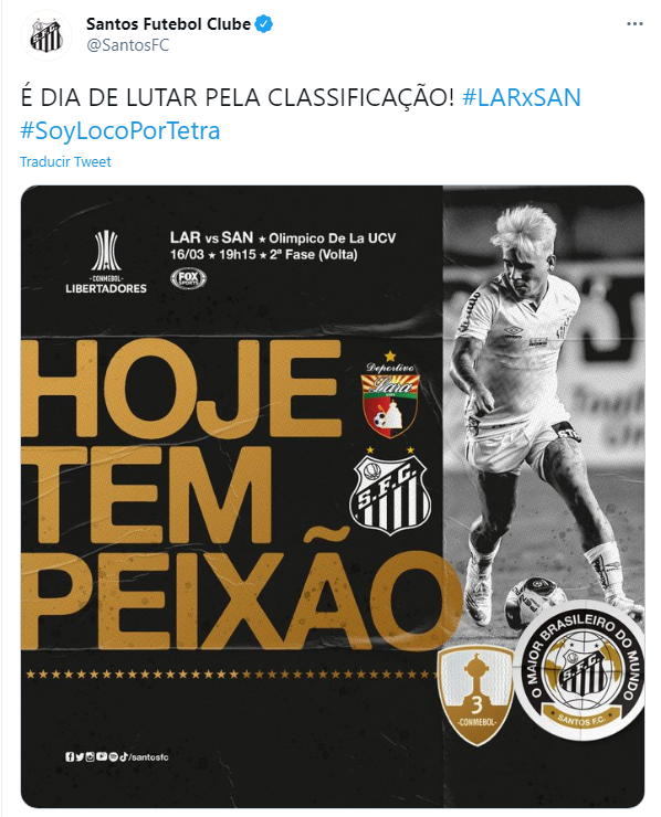 Sabe que debe mantener la ventaja, donde el empate, cualquier tipo de victoria o la caída con goles manteniendo diferencia de un gol lo dejan todavía en carrera al “Peixe”. Los dirigidos por el argentino Ariel Holanvienen de vencer a Ituano por 2-1 en el Campeonato Paulista y sabe que todavía tiene un largo camino por delante para defender su último subcampeonato continental. El “Pez” ganó tres de las 15 ediciones que participó, sabiendo que en todas ellas llegó a jugar, al menos, la fase de grupos.