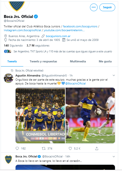 El elegido fue Agustín Almendra, quien escribió en su cuenta: “Orgulloso de ser parte de este equipo, muchas gracias a la gente por el apoyo. De boca hasta la muerte!”.