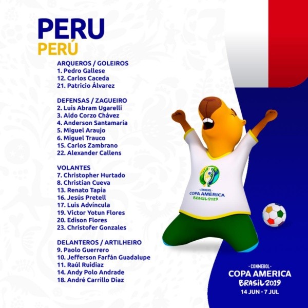 En la jornada del viernes el Twitter oficial de la competición anunció el listado de todos los seleccionados que encararán la versión 2019 de la Copa América.