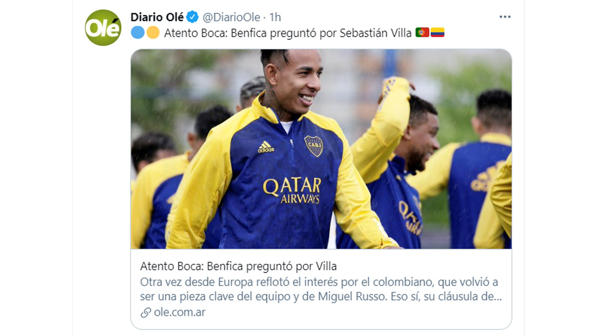 Como lo adelantó el diario Olé de Argentina, Benfica fue el primer equipo de Europa que empezó a sondear la posibilidad de fichar al atacante cafetero. Sin embargo, ya salió a relucir la parte económica y el pago de su ficha sería uno de los grandes obstáculos para sacarlo de Argentina.