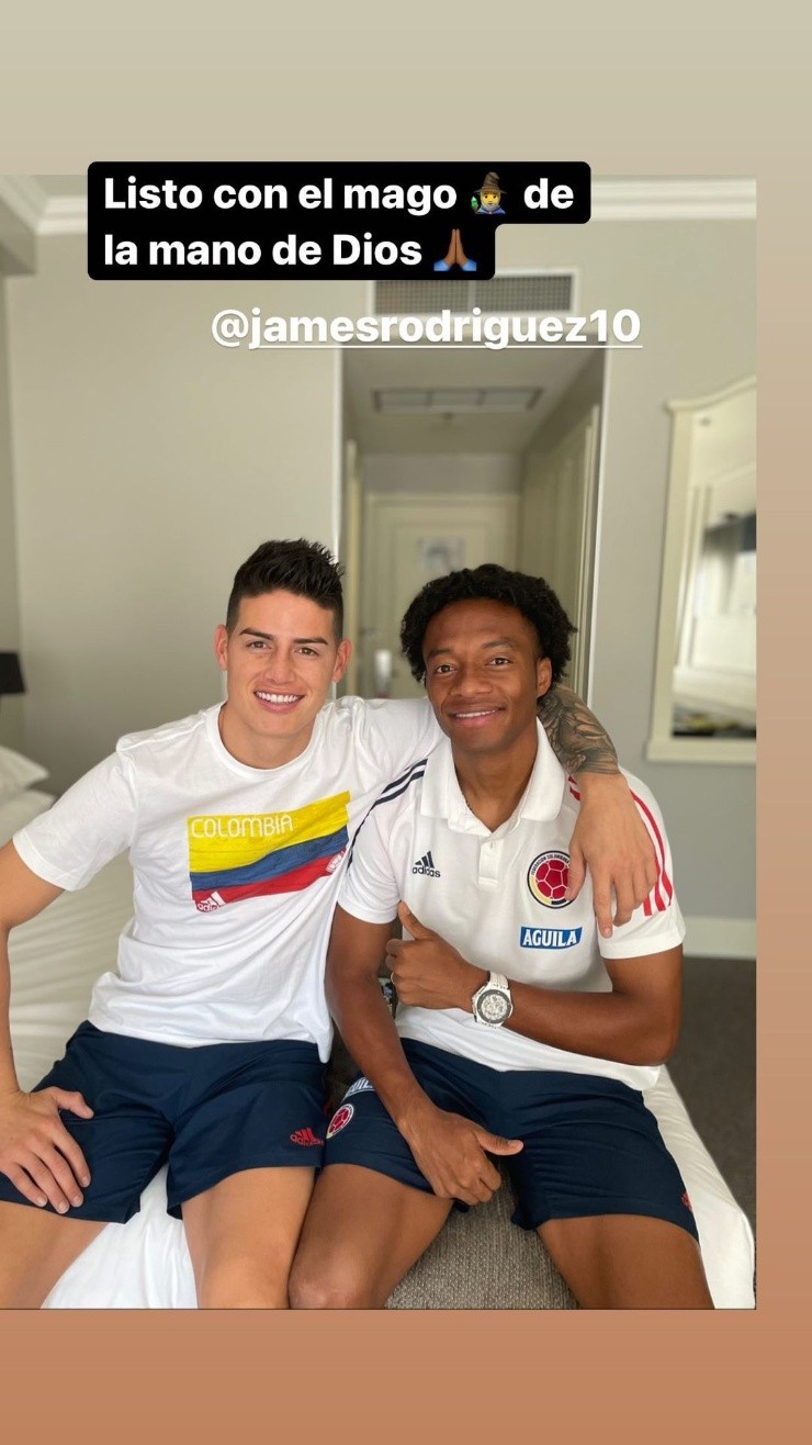 En sus redes sociales, tanto James y Cuadrado pusieron una imagen en la que dicen estar listos; y luego, Juan Guillermo subió una con el ’10’ diciendo: “Listo con el mago. De la mano de Dios”.