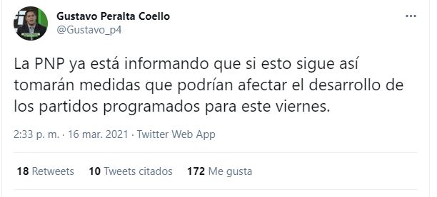 Los actos vandálicos realizados por los hinchas de Universitario y Sporting Cristal continúan según los videos publicados por ellos mismos en las redes sociales. Ante las respuestas que estas pueden generar, la Policía podría tomar medidas contra la Liga 1, lo que haría que algunos partidos no cuenten con garantías de seguridad y sean postergados.