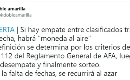 Es casi imposible que suceda. Realmente, el porcentaje es bajísimo. Pero de igual manera, causa gracia. Generará memes, indignación y risas por mayor. Pasa que según informó el medio Doble Amarilla, desde la Liga Profesional de Fútbol decidieron que si hay empate entre clasificados en la Copa, todo se decidirá con una “moneda al aire”.