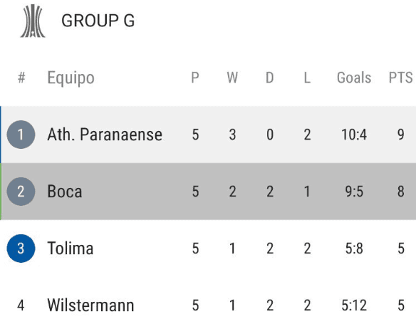 Pero el equipo colombiano sí puede alcanzar la posición de Boca, que suma ocho, aunque deberá procurar además descontarle los siete goles que el equipo argentino le lleva de diferencia en la sumatoria.