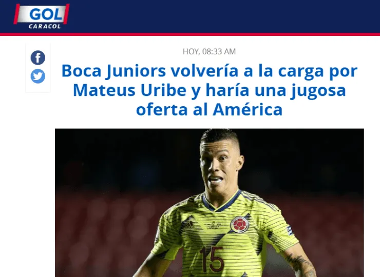 Así como en su momento estuvo en el radar del club argentino, Gol Caracol indicó que Boca llevará a cabo una oferta más que suculenta por los servicios deMateus Uribe, quien disputó la Copa América junto a la Selección de Colombia.