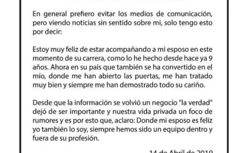 Pero, este domingo, Daniela Rendón, mujer de Armani, decidió utilizar su cuenta de Instagram para compartir con todos sus seguidores un comunicado oficial haciendo referencia a esta cuestión.