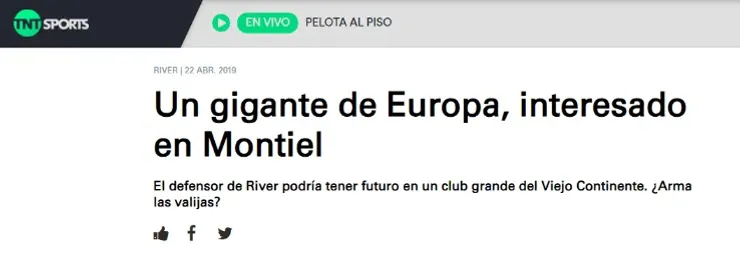 Gracias a su rendimiento, Montiel logró captar el interés y la atención de Javier Zanetti, vicepresidente de Inter de la Serie A (curiosamente El Pupi jugó en la misma posición que el hombre del Millonario, por lo que él más que nadie sabe quién vale la pena y quién no).