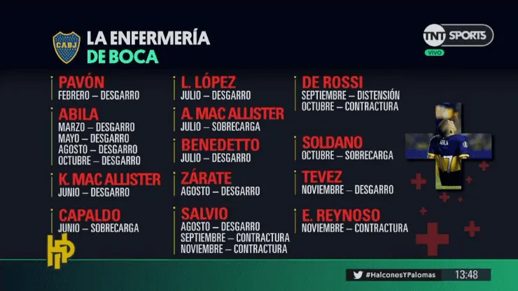 Este jueves, enTNT Sportsrepasaron el historial médico completo del club desde principio de año.