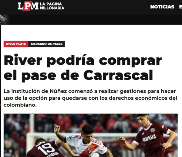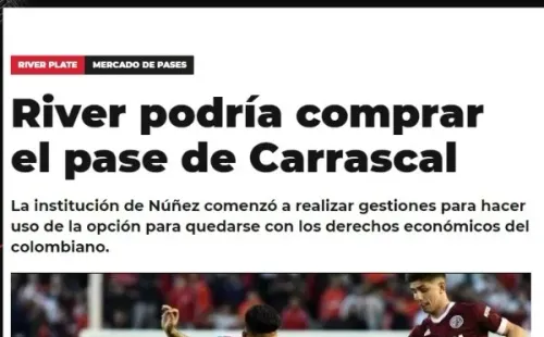 De todas maneras, el andar de Carrascal en River sigue teniendo un ida y vuelta. Pero, a pesar de ello, el club ‘Millonario’ tiene intenciones de comprar su ficha, según informó ‘La Página Millonaria’.