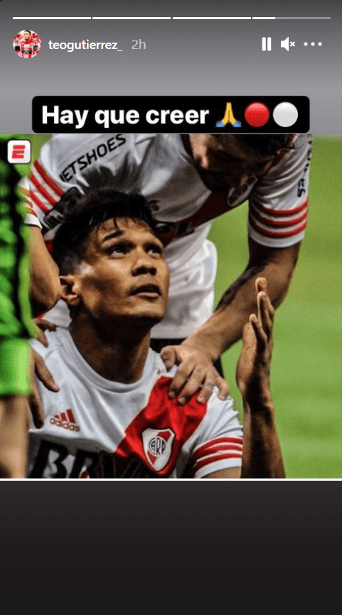 Por eso, publicó en sus historias de Instagram una foto suya festejando un gol con la camiseta blanca y roja con el texto: “Hay que creer”.