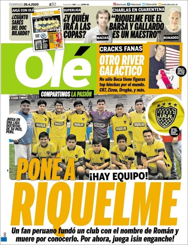La noticia tomó tal vuelo que llegó a Argentina. Y es que el mismísimo diario Olé le dedicó su portada de este domingo al conjunto peruano.