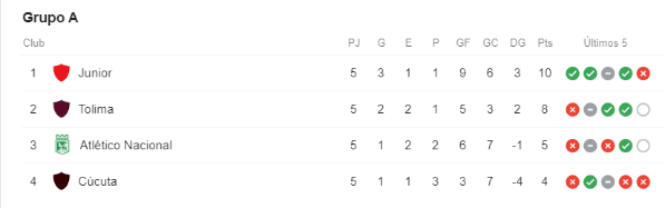 Con este resultado, Atlético Nacional se quedó sin opción alguna de llegar a la gran final de la Liga Águila II-2019. Llegó a 6 puntos, pero el líder del grupo es Junior con 10 unidades a falta de una fecha para finalizar los cuadrangulares.