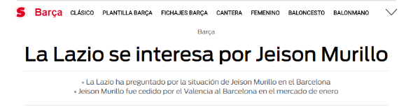 La experiencia de Jeison Murillo en el Barcelona, de España, no fue la deseada. El colombiano apenas tuvo la oportunidad de jugar en 3 partidos durante todo el semestre, no tuvo la confianza del técnico Ernesto Valverde y en la prensa catalana su fichaje es motivo de fuertes críticas.