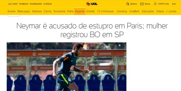 Neymar Júnior, figura de la selección de aquel país, fue denunciado por violación, segúnUOL Esporte.