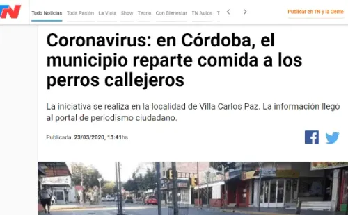 Uno de los efectos colaterales de la cuarentena obligatoria es la falta de alimentación para los perros callejeros. Sin gente en las calles y con los comercios cerrados nadie los alimenta.